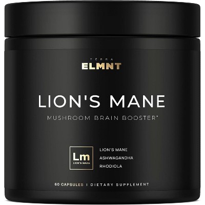 ELMNT Lion's Mane Mushroom Brain Booster, Made with Lion's Mane, Ashwagandha, & Rhodiola, Dietary Supplement - 60 Capsules