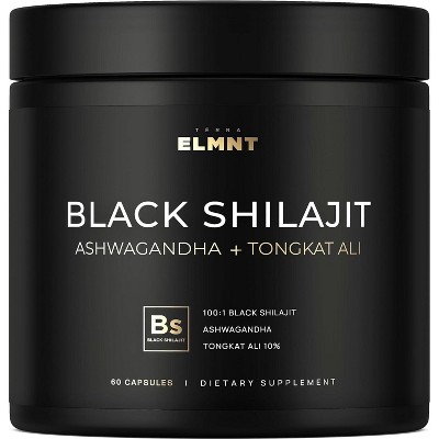 ELMNT Black Shilajit with Ashwagandha + Tongkat Ali, Made with 100:1 Black Shilajit & Tongkat Ali 10%, Dietary Supplement - 60 Capsules