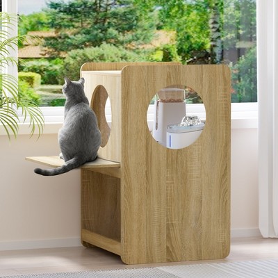 GDLF Cat Feeding Station, Dog-Proof Elevated Cat Feeding Table with Window Perch