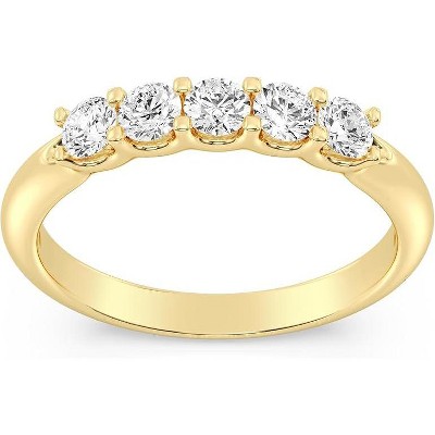 GILDED 1/2 CTTW Lab Grown Diamond 5 Stones Engagement Rings in 14KT Gold Plated or 925 Sterling Silver, Size 7