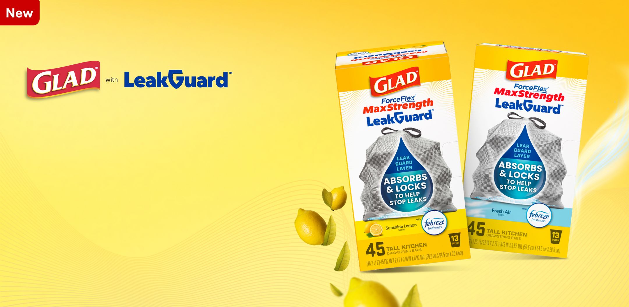 Glad ForceFlex MaxStrength Drawstring LeakGuard Trash Bags - Sunshine Lemon - 13 Gallon - 45ct