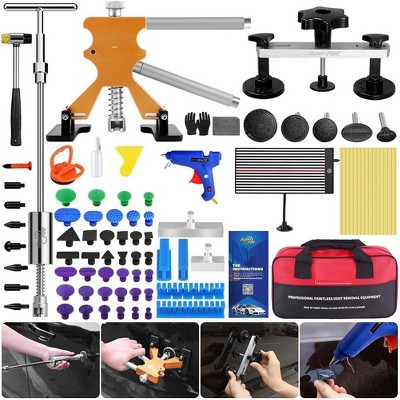 Auto Body Dent Repair Kit, Paintless Dent Removal Kit Car Dent Removal Tools Dent Puller Kit W/Rubber Hammer, Bridge Puller, Hot Melt Adhesive Strip
