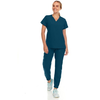 Hey Collection Womens Stretch V-Neck Jogger Scrubs Set, Medical Nursing Tops with Four Pocket Pants