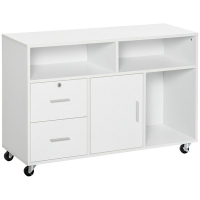 HOMCOM Mobile Storage Cabinet Organizer with Drawer and Cabinet, Printer Stand with Castors