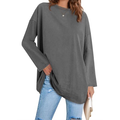Imily Bela Women's Oversized Long Sleeve Crewneck Tunic Tops Soft Casual Loose Blouse