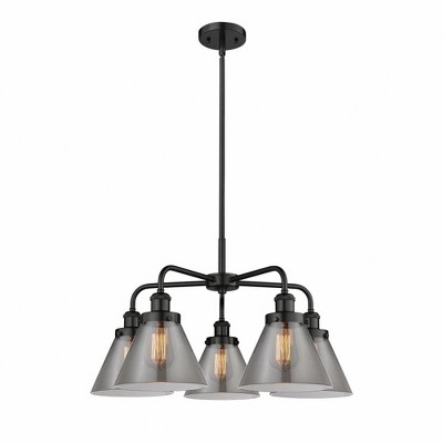 Cone - 5 Light Stem Hung Chandelier In Art Deco Style-15 Inches Tall and 25.75 Inches Wide