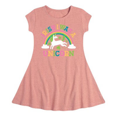 Girls' - Instant Message - St. Patrick's Day Irish I Was A Unicorn Fit & Flair Cap Sleeve Graphic Dress
