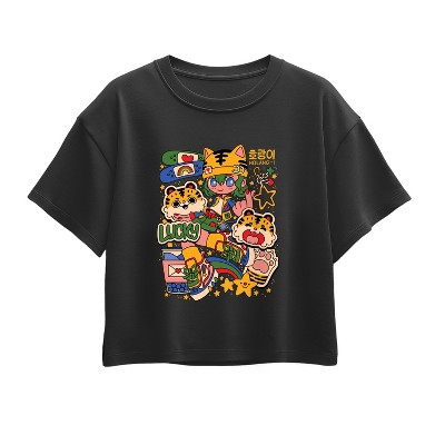 Girls' Instant Message Kpop Streetwear Girl Short Sleeve Boxy Graphic T-Shirt - Black - Small