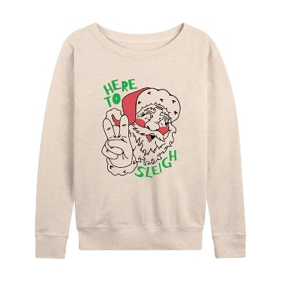 Women's - Instant Message - Here To Sleigh Christmas Lightweight French Terry Wide Neck Long Sleeve Graphic Shirt