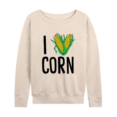 Women's - Instant Message - Valentine's Day I Heart Corn Lightweight French Terry Wide Neck Long Sleeve Graphic Shirt