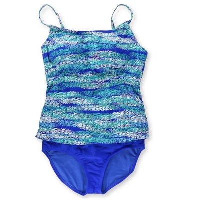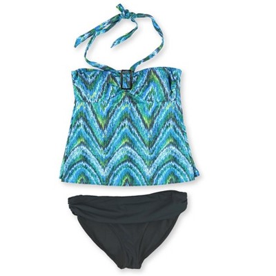 Island Escape Womens Tiered Ruffle 2 Piece Tankini