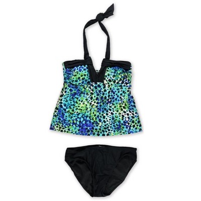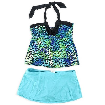 Island Escape Womens Animal Print Ruffle Skirtini 2 Piece Tankini