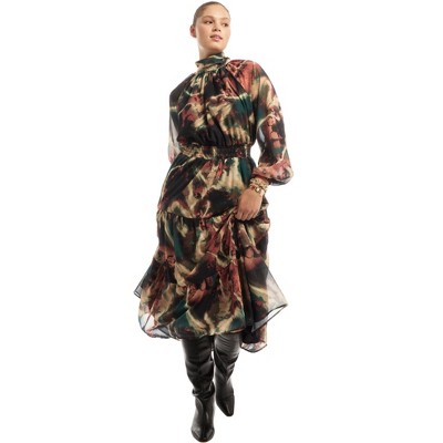 June & Vie Ruffled Paisley Chiffon Maxi Dress
