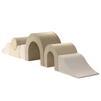 KIDKII Lux Play Set 8-Piece Firm Foam Climbing and Motor Skill Play Kit, Beige