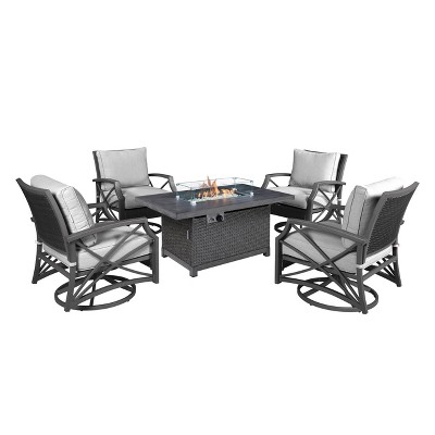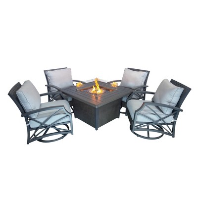 Kinger Home Ethan 5-Piece Rattan Wicker Propane Fire Pit Set with an Aluminum Frame