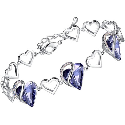 Leafael Infinity Love Heart Birthstone Crystal Link Bracelet, Silver Plated, 7“+2” Adjustable Chain