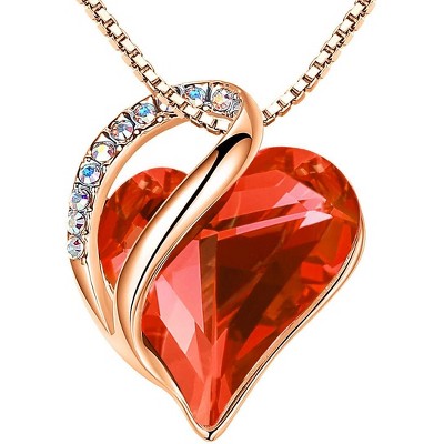 Leafael 18K Rose Gold Plated Love Heart Pendant Necklace with Healing Stone Crystal Jewelry Gifts for Women, 18"+2"