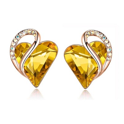 Leafael 18K Rose Gold Plated Love Heart Stud Earrings with Healing Stone Crystal Jewelry Gifts for Women