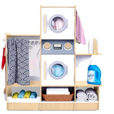Lil’ Jumbl Kids Washer and Dryer Playset, Wooden Laundry Play Set for Kids w/Iron, Hangers & More