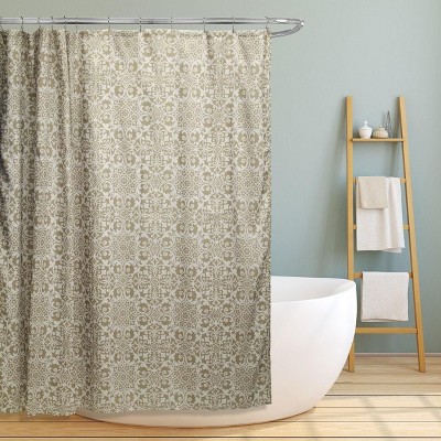 Linen Store Lori 70"x70" Canvas Shower Curtain Floral Scroll Design with Natural Texture, Smooth Drape, and Reliable Privacy