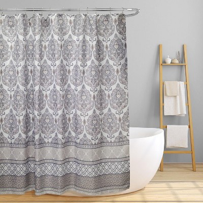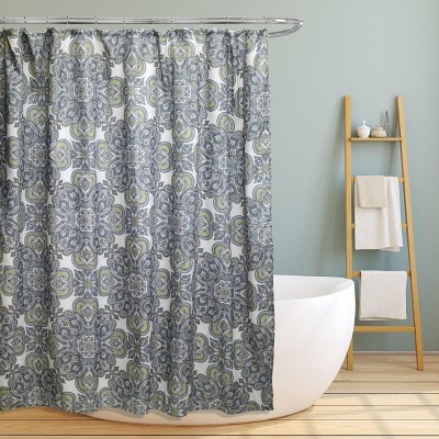 Linen Store Amy 70"x70" Canvas Shower Curtain Timeless Paisley Floral Design with Everyday Durability