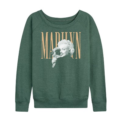Women's - Marilyn Monroe - Marilyn Grid Lightweight French Terry Wide Neck Long Sleeve Graphic Shirt