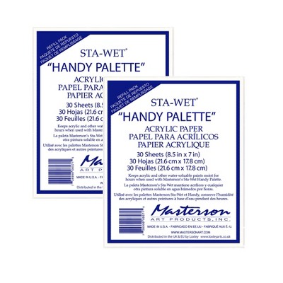 Masterson Art Products Sta-Wet® Handy Palette Acrylic Paper Refills, White, 8.5x7 in, 30 Sheets Per Pack, 2 Packs