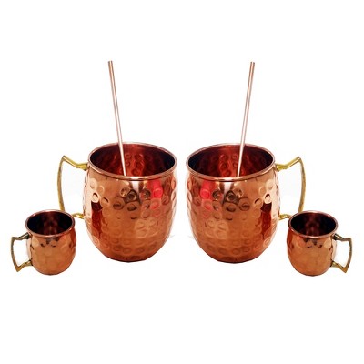 Set of 4 Moscow Mule Mug / Shot Glass / Straw Complete Set 100% Copper