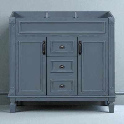 Mshliw Modern 36 Inch Bathroom Vanity with Sink, MDF Cabinet with Storage Drawers, Freestanding, White Ceramic Basin