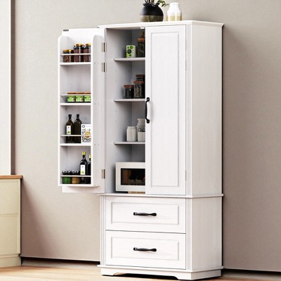 Kitchen Pantry Cabinet with 2 Drawers, 8 Door Shelves, Adjustable Shelves, Embossed Texture Freestanding Storage Hutch for Dining Room