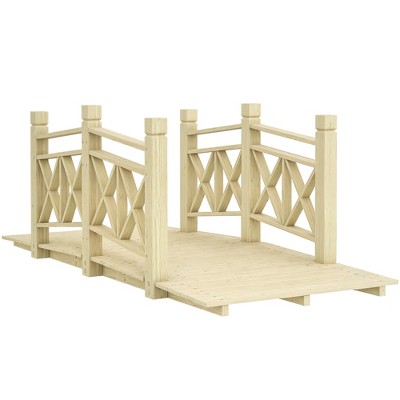Outsunny 5 ft. Garden Bridge with Safety Rails, Wooden Outdoor Bridge for Backyard Ponds, Creeks, Streams