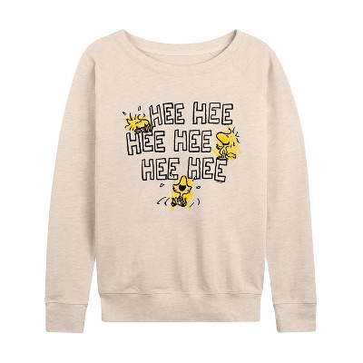 Women's - Peanuts - Hee Hee Woodstock Lightweight French Terry Wide Neck Long Sleeve Graphic Shirt