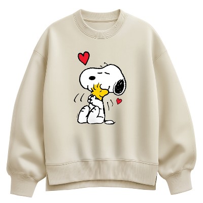 Women's - Peanuts - Snoopy Woodstock Heart Oversized Fleece Crew Sweatshirt