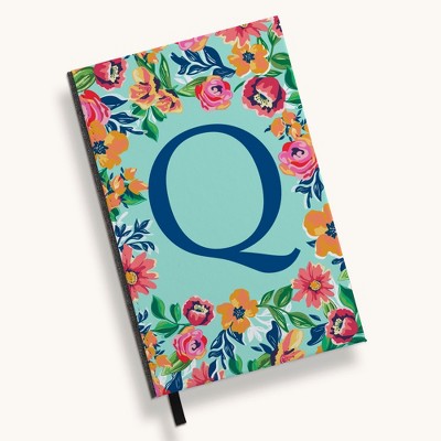 Personalization Mall Flowery Initial Journal, Blue Aqua