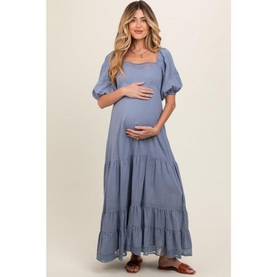 PinkBlush Blue Lace Insert Maternity Maxi Dress