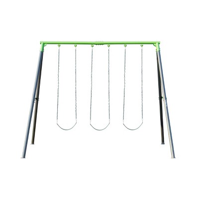 9-FT Heavy-Duty Metal Swing Set for Kids & Adults - 600 lb Capacity Reinforced A-Frame Backyard Playset with 3-Swing Design - Safety-Coated Chains