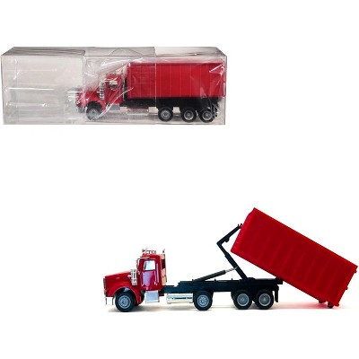 Peterbilt 367 Roll-Off Dump Truck Red with Red Box 1/87 (HO) Plastic Model Car by Promotex