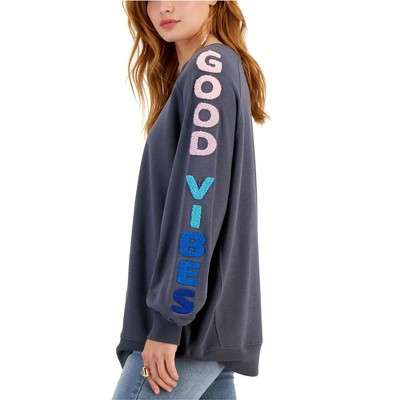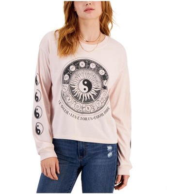 Rebellious One Womens Celestial Graphic-Print Pullover Sweater