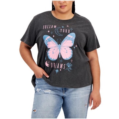 Rebellious One Womens Follow Your Dreams Butterfy Graphic T-Shirt