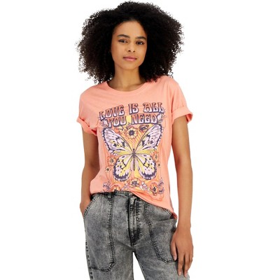 Rebellious One Womens Angle and Butterfly Graphic T-Shirt