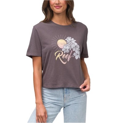 Reef Womens Say Please Cropped Graphic T-Shirt