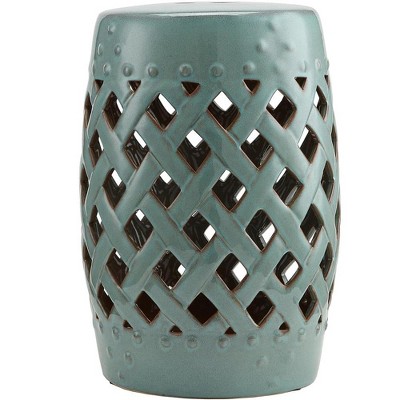Resenkos Modern Garden Stool, Patio Stool Side Table,13" x 18" Ceramic Garden Stool, Decorative End Table, Antique Blue Green