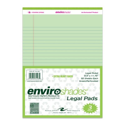 Roaring Spring Enviroshades Recycled Colored Legal Pads, 30% PCW, Assorted Sizes and Colors