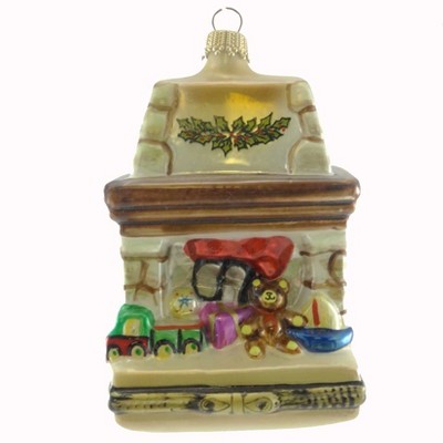 Holiday Ornament 4.25 In Fireplace With Santa Tree Ornament , Christmas Teddy Bear (PC)