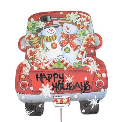Christmas 40.0 Inch Snowman Truck Charm Yard , Red Pick-Up (1PC)