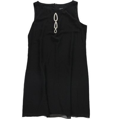 S.L. Fashions Womens Rhinestone Cut-out Shift Dress, black, 14