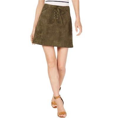 Sage The Label Womens Faux Suede Lace Up A-line Skirt