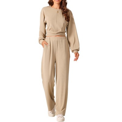Seta T Women's Two Piece Outfits Front Cropped Sweatshirt and Wide Leg Sweatpant Tracksuit Lounge Set