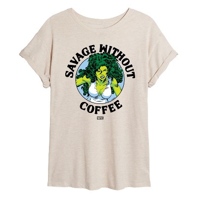 Women's - She-Hulk - Savage Without Coffee Oversized Graphic T-Shirt