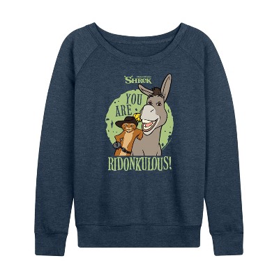 Women's - Shrek - Born To Yap Donkey Lightweight French Terry Wide Neck Long Sleeve Graphic Shirt